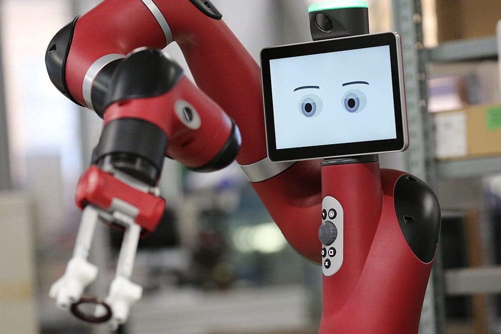 Der neue Kollege in Weinheim ist ein Cobot. Roboter wie er wurden dafür erschaffen, mit dem Menschen zusammenzuarbeiten. Daher rührt auch sein Name: Cobot ist eine Abkürzung für den englischen Begriff „Collaborative Robot“. Hand in Hand mit dem Menschen zu arbeiten war Industrierobotern lange Zeit nicht möglich. Denn früher durften sie aus Sicherheitsgründen nur in Käfigen agieren. Cobots hingegen sind klein, leicht und wendig. Sie sind auf niedrige Lasten und Geschwindigkeiten ausgelegt.