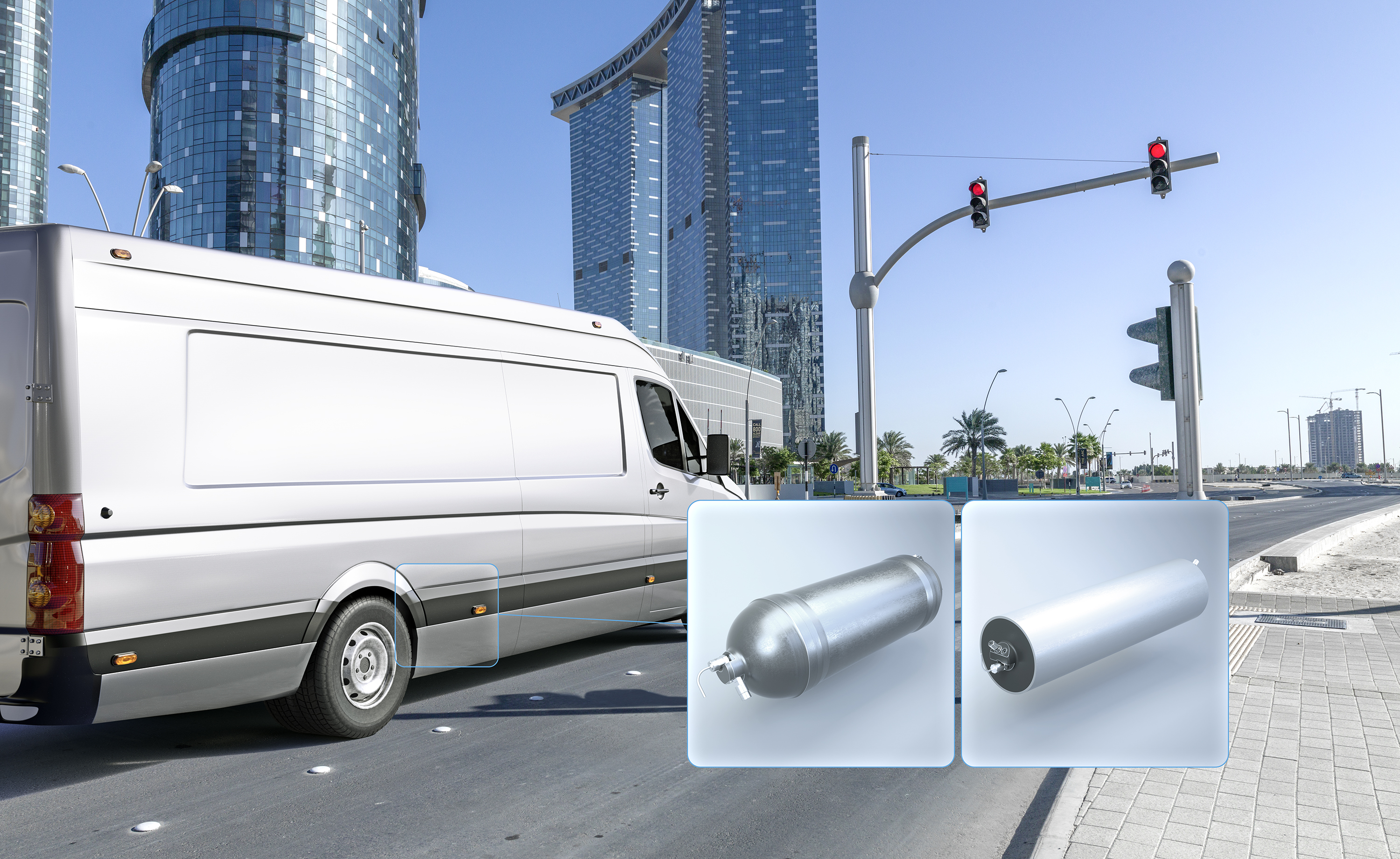 Das geringe Gewicht des neuen Hochdruckspeichers aus Stahl wurde durch spezielle konstruktive Auslegungen erreicht. Dazu gehören ein für den Kraftverlauf optimiertes Design der Endkappen, ein Kolben aus Aluminium als Medientrenner und die teilweise Reduktion der Materialdicke in Bereichen des Druckkörpers. Das führt beispielsweise bei einem Hochdruckspeicher aus Stahl mit etwa 20 Litern Gasvolumen zu einer Gewichtsreduktion von rund 60 Prozent. Die stoffschlüssige Verbindung der Deckel mit dem Gehäuse erfolgt zuverlässig über ein Elektronenstrahl-Schweißverfahren.