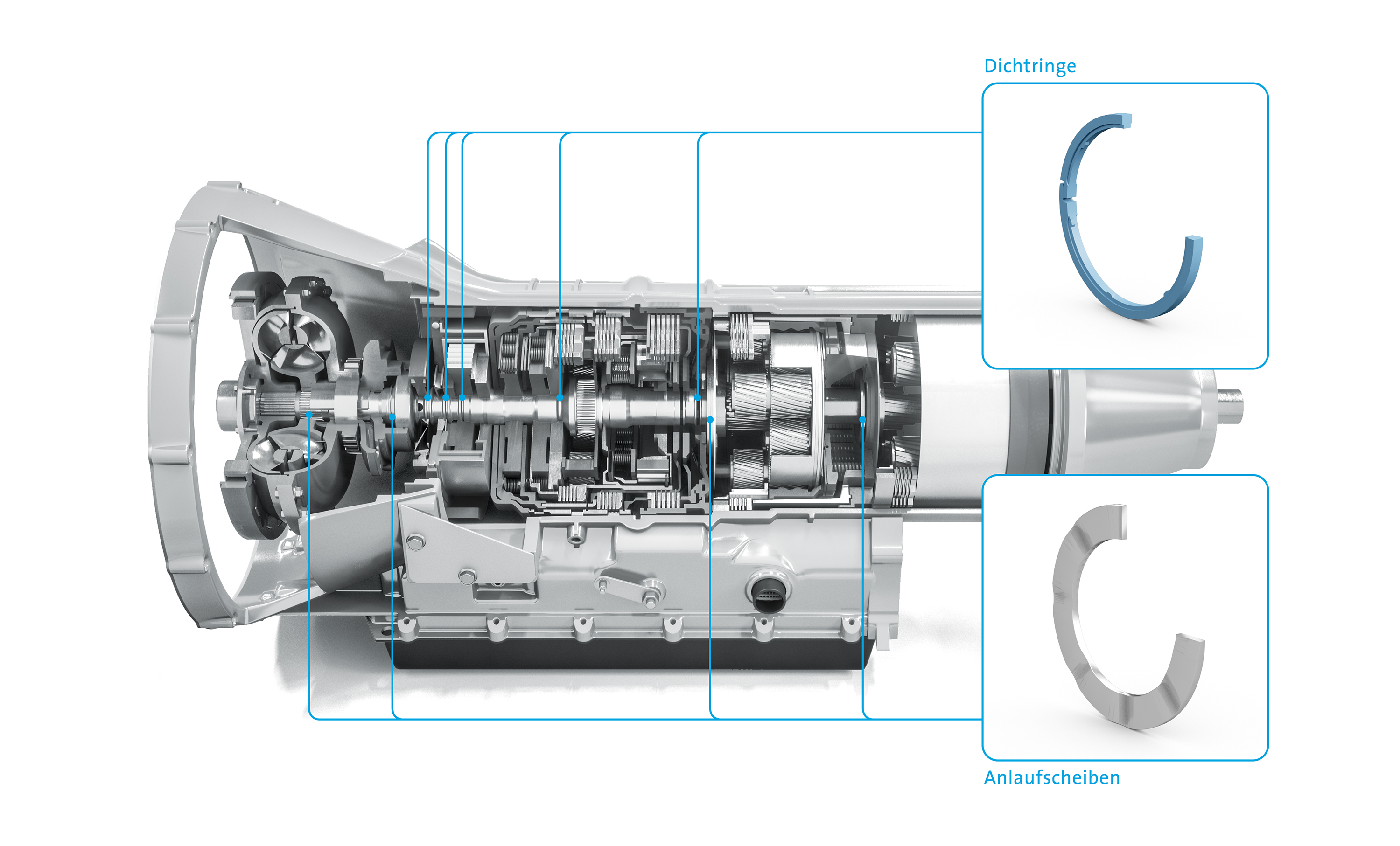 Ein Beispiel ist der neue Werkstoff Quantix® 55-14, der auf Grundlage des Hochleistungspolymers PEEK entwickelt wurde. Dieses Material wird auch als „Low Hardness PEEK“ bezeichnet und hat die Eigenschaft, im Kontakt mit dem Gegenlaufpartner Stahl weniger Verschleiß zu verursachen. Aus dem Werkstoff fertigten die Ingenieure von Freudenberg Sealing Technologies am US-Standort Findlay (Ohio) Dichtringe für Automatikgetriebe, die als hydraulische Drehdurchführungen auf der Getriebewelle angebracht sind und den Ölstrom zwischen Kupplung und dem Inneren der Getriebewelle abdichten. Der Vorteil des neuen Materials: Durch die geringere Aggressivität gegenüber dem Gegenlaufpartner sinken die Härteanforderungen an die Getriebewellen deutlich von Rockwell-Einheit HRC 45 auf HRC 25. Damit verringern sich die Produktionskosten der Hersteller. Die neuen Getriebedichtringe haben mehrere Kundentests bereits bestanden und werden demnächst in Serie gehen.