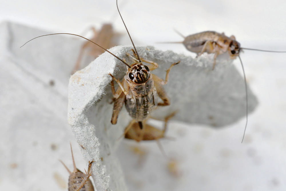 The scene is a shed in northeast Thailand containing three long rows of brick stalls. The farmer walks along the rows spreading shovelfuls of feed, moving past walls as high as his hips. What looks like a chicken coop, at first glance, is home to a protein source of an altogether different sort. Instead of chickens, thousands of crickets descend upon the fresh feed. Instead of loud cackling, a steady chirping fills the air. These crickets could be an answer to a major global challenge.