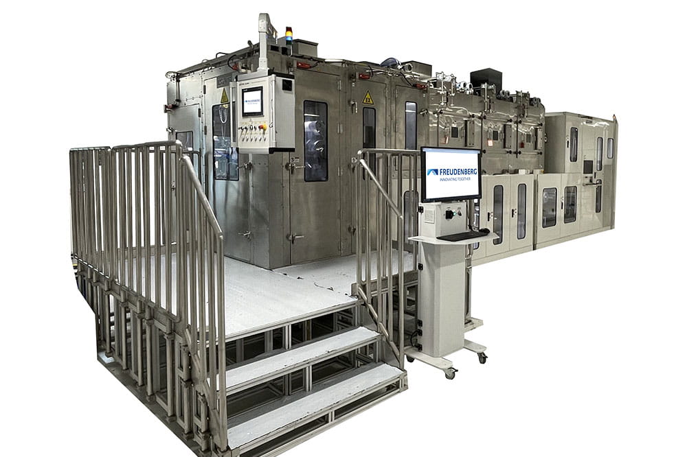 Modern and efficient production processes are essential for scaling up fuel cell systems. Freudenberg has many years of experience in this field and relies on innovative manufacturing technologies, such as roll-to-roll production, to support the industrial market ramp-up and provide its customers with high-performance, competitive solutions.